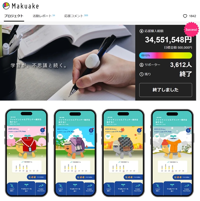 一般発売前に実施した応援購入サービス「マクアケ」 (※)では、目標達成率6900%という圧倒的な反響を得ました。