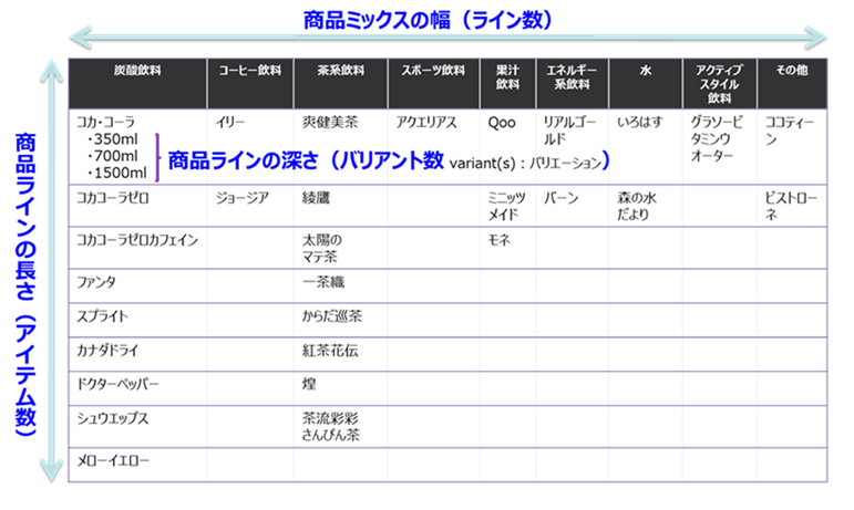 「コカコーラ」が好きな人でも飲む場面などにより、普通サイズが欲しいとき、大容量が欲しいときがありますよね。それに対応するのがバリエーションの考え方です。