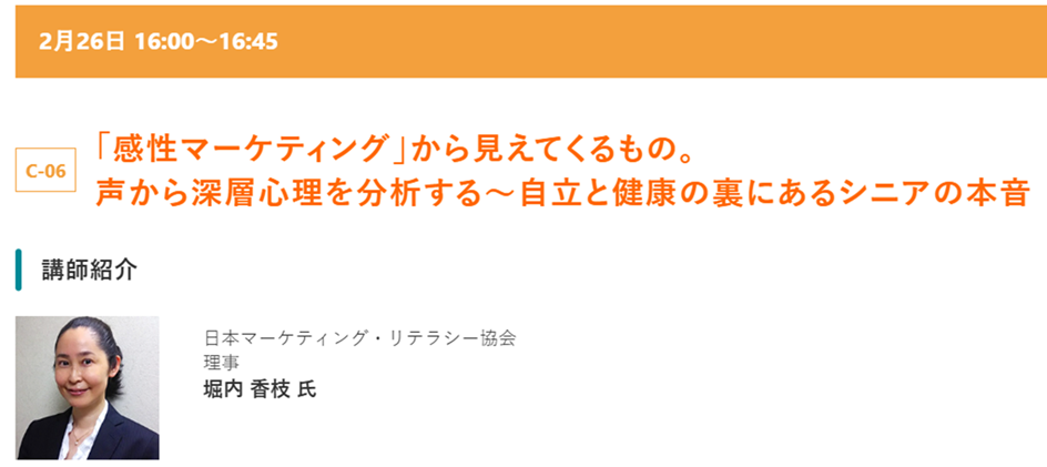 [2月26日]「感性マーケティング。声から「深層心理」を分析する、~自立と健康の裏にあるシニアの本音」講演いたします